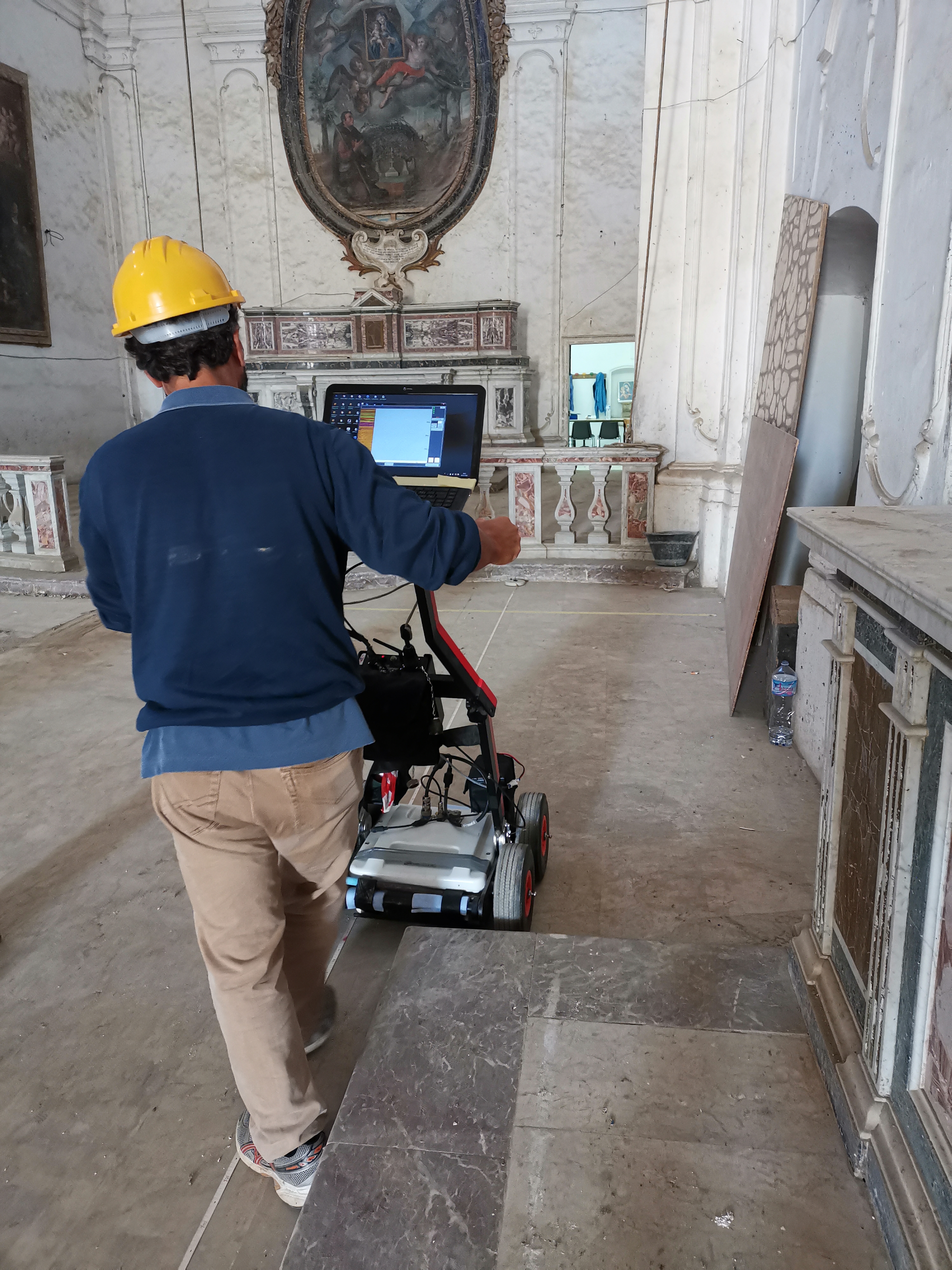 Questa metodologia permette indagini a varie profondità, da alcune decine di metri a pochi centimetri in funzione del tipo di antenna utilizzata, restituendo informazioni su: mappature del suolo, ubicazione di sottoservizi, individuazione di discontinuità e spessore delle fondazioni, di cavità, di cripte, di preesistenze di tipo archeologico e mappature di superfici per l’individuazione dello spessore delle murature, presenza e mappatura e indagine dimensionale di ferri nelle armature, individuazione di ambienti nascosti o occultati, distacchi dell’intonaco o di dipinti murali dalla tessitura muraria o dalle volte di edifici e chiese, individuazione e dimensionamento di fratture e discontinuità su elementi architettonici e/o decorativi (colonne, statue, etc.).